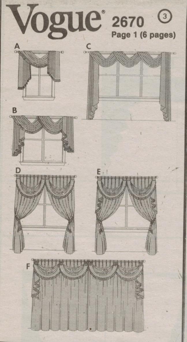 Vogue Pattern 2670 Patterns For Living Swags And Jabot Window Treatment Home Dec Sewing Pattern Heaven